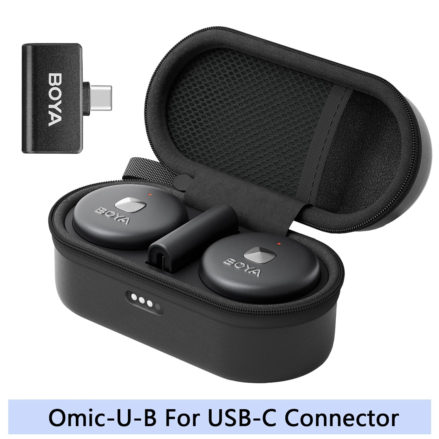 The BOYA Omic is an ultra-compact and portable 2.4GHz wireless microphone system, compatible with computers, Android/ iOs mobiledevices and more. It features automatic pairing and selectable noise cancellation, delivering broadcast-quality sound with remarkable ease ofuse.The Omic is ideal for content creation, live streaming, vlogging, mobilejournalism and much more. The USB-C receiver and iOS Lightning receiver are device powered and have USB-C charging ports, which support charging and powering of deviceswhile in use. The included charging case allows you to charge the transmitter(s)anywhere, making the Omic kit easy to carry on.