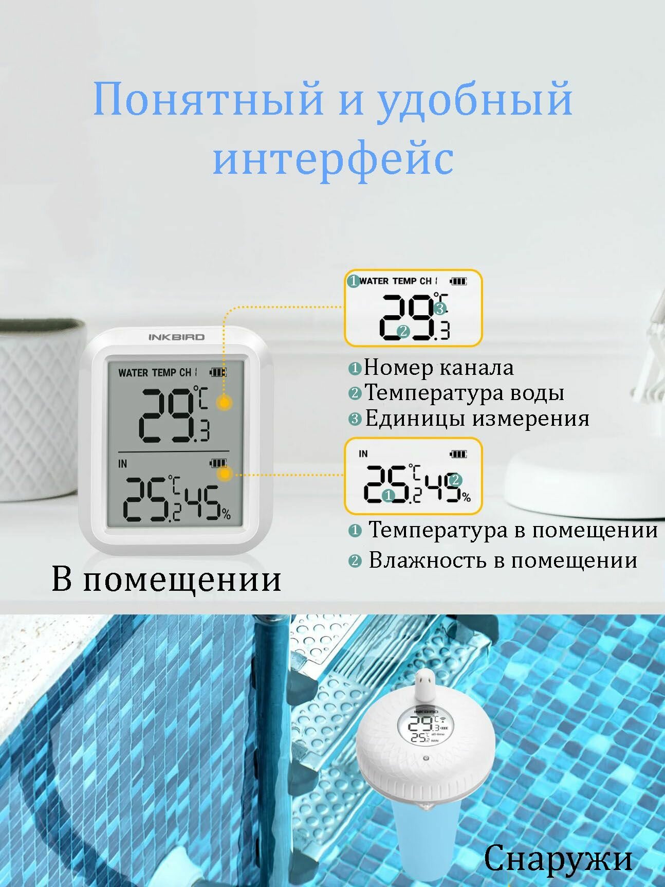 Несколько подключений: к одному приемнику можно одновременно подключить три термометра для бассейна, что делает IBS-P01R отличным помощником для мониторинга температуры в нескольких местах одновременно.