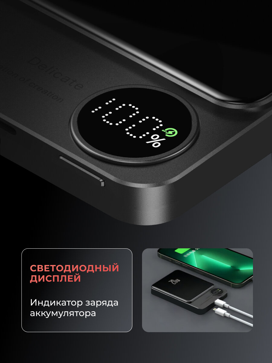 Повербанк имеет два разъема - lightning и Type-c, а также LED-дисплей, который позволяет контролировать уровень заряда.