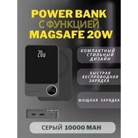 Купить Повербанк MagSafe для iPhone 10000 mAh 20 Ватт, внешний аккумулятор, power bank на айфон, беспроводная зарядка на айфон / черный с доставкой по всей России.