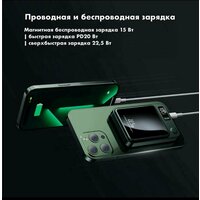 Стильный и мощный повербанк MagSafe 10000 mAh — это надежный внешний аккумулятор для телефона. Компактный дизайн, высокая емкость, беспроводная зарядка и быстрая зарядка делают его идеальным для путешествий, работы и повседневной жизни.