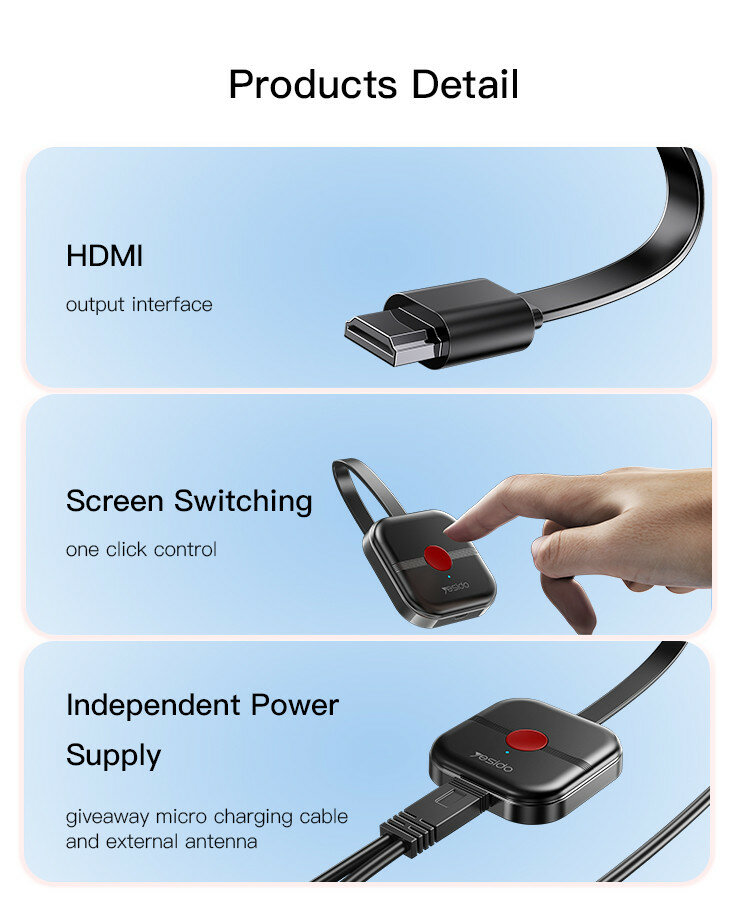Купить Беспроводной приемник аудио видео адаптер Yesido 4K Display Reciver Miracast для проекторов и HDTV, Wi-Fi 2.4G, Черный с доставкой по всей России.