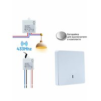 Беспроводной проходной выключатель света – (2 выключателя белых с батарейкой + радиоуправляемое реле 220В 10А 433МГц)