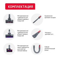Предусмотрена возможность вертикальной парковки, а также в комплекте идет база для подзарядки и компактного размещения всех насадок.