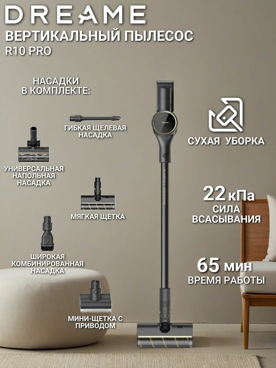 Купить Беспроводной пылесос Dreame R10 Pro Black VTV41B с доставкой по всей России. Беспроводной пылесос Dreame R10 Pro Black VTV41B: сравнение цен, характеристики, фото, актуальное наличие и цены.
