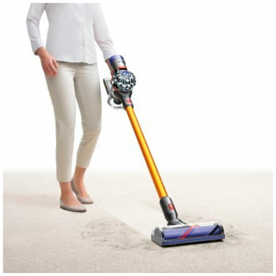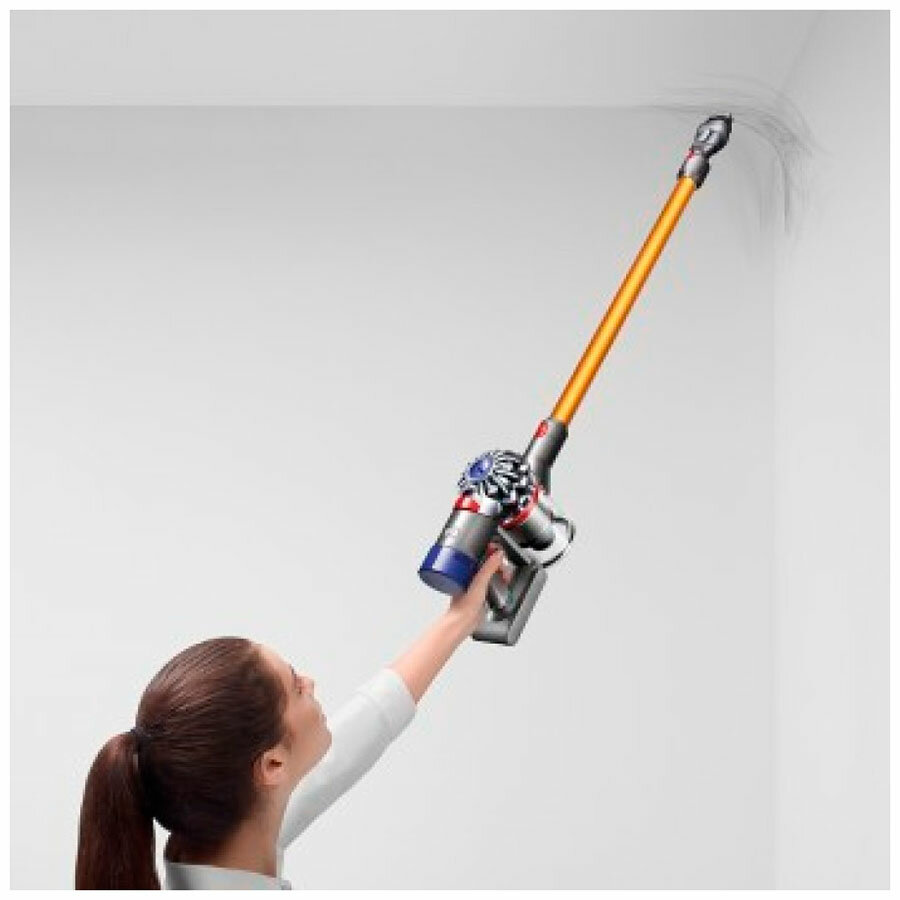 Dyson V8 SV25 Absolute можно быстро превратить в ручной пылесос одним щелчком. Ваша моторизованная щетка удалит волосы и грязь, скопившиеся в труднодоступных местах, например на лестнице или в машине. Угловой шкаф с пылью и аллергенами в труднодоступных местах.