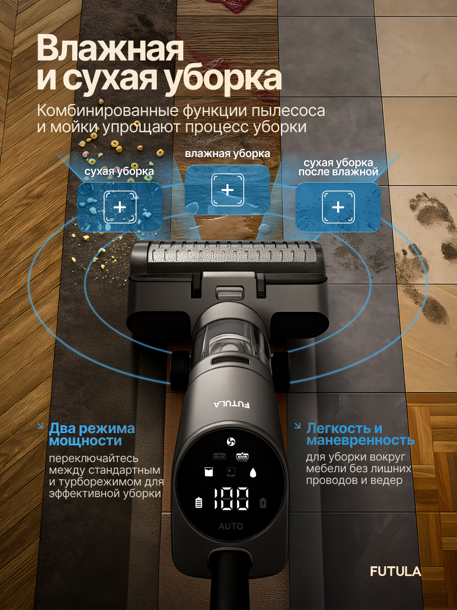 Купить Беспроводной пылесос Futula Wet and Dry Vacuum Cleaner H12, черный с доставкой по всей России.