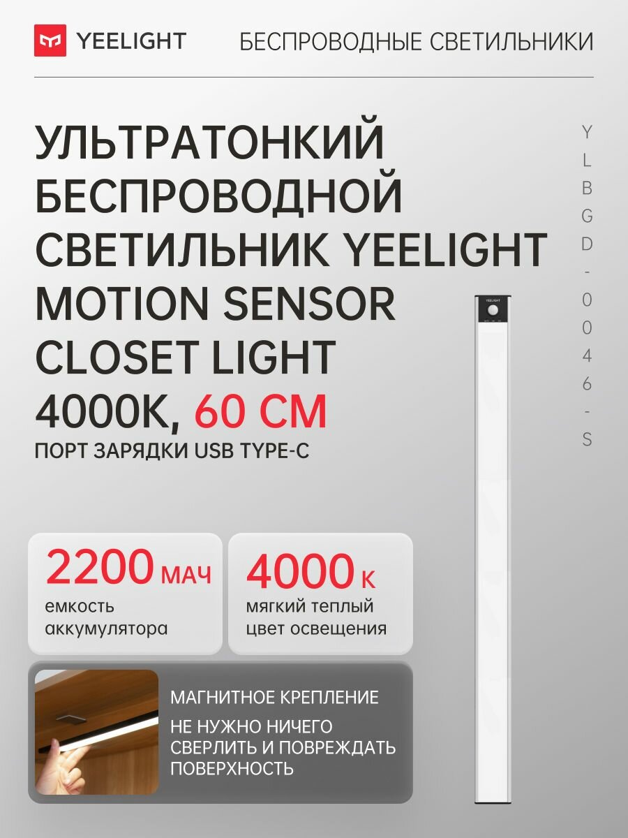 Купить Беспроводной светильник с датчиком движения Yeelight Motion Sensor Closet Light A60 Sliver 4000k / YLBGD-0046 с доставкой по всей России. Беспроводной светильник с датчиком движения Yeelight Motion Sensor Closet Light A60 Sliver 4000k / YLBGD-0046: сравнение цен, характеристики, фото, актуальное наличие и цены.