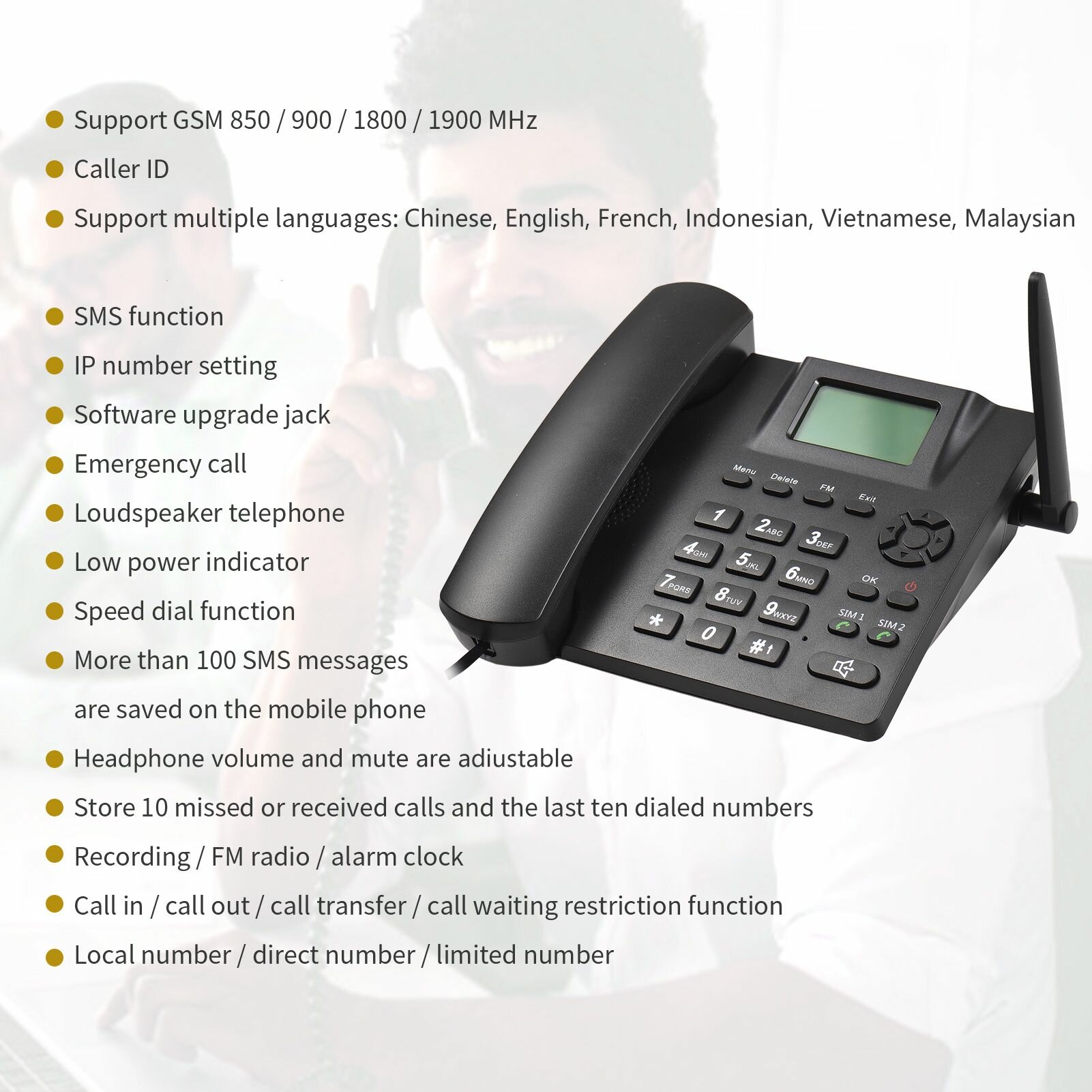 Беспроводной телефон 2G GSM, настольный телефон с двумя SIM-картами, антенной, записью SMS, будильником, поддержкой 6 языков для домашнего офиса, колл-центра отеля: сравнение цен, характеристики, фото, актуальное наличие и цены.