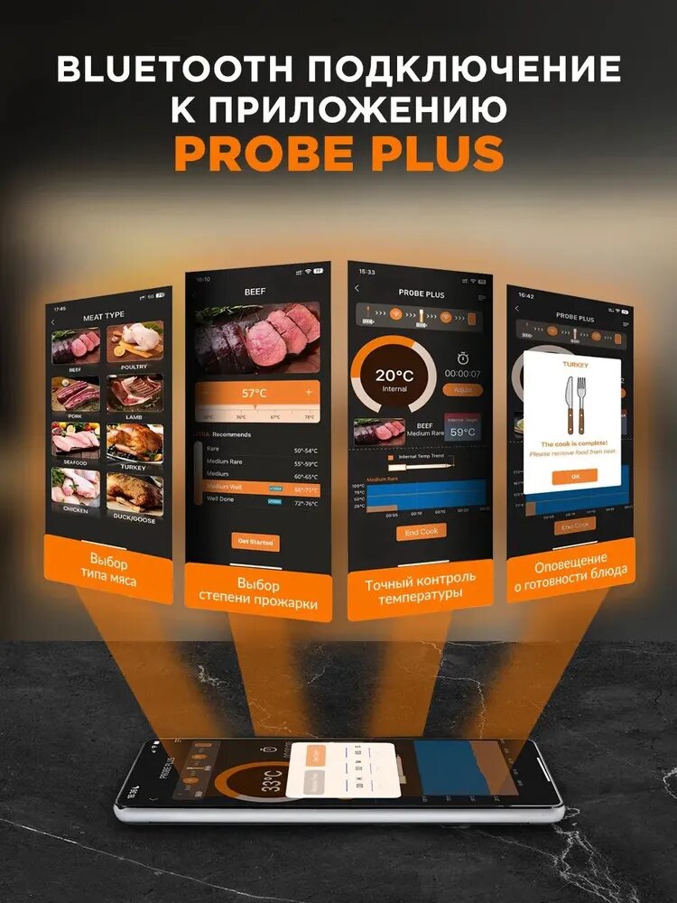 Купить Беспроводной термометр для мяса, рыбы и птицы с подключением к Bluetooth, кулинарный термощуп для дома MAYEN Bratenfhler FM-220 с доставкой по всей России.