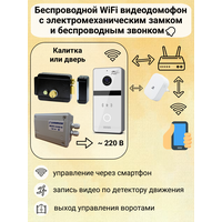 Готовый комплект IP-видеодомофона с электромеханическим замком на калитку или дверь, управление через смартфон, подключение беспроводное WiFi 2.4/5 ГГц, беспроводной звонок в комплекте. Вызывная панель с цветной видеокамерой 2 Мп и встроенным считывателем электронных ключей. Накладной электромеханический замок для калитки. Функция записи по детектору движения. Мобильное приложение Fox Smart.