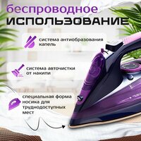 Беспроводной утюг, домашний, с функцией вертикальной глажки, паровой удар, антипригарное покрытие, фиолетовый, система самоочистки,2400Вт: сравнение цен, характеристики, фото, актуальное наличие и цены.