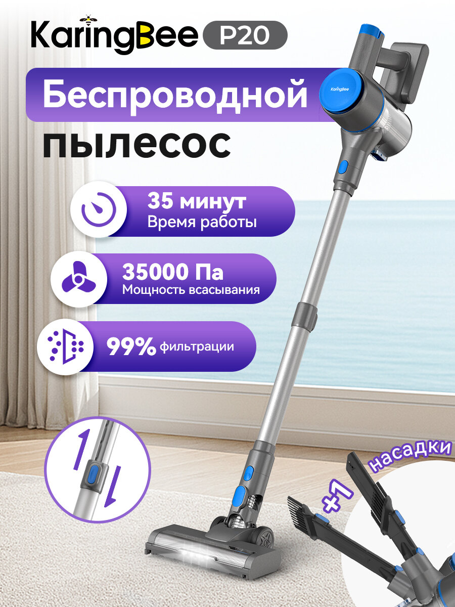 Беспроводной, вертикальный пылесос KaringBee P20 для сухой уборки, 250Вт: сравнение цен, характеристики, фото, актуальное наличие и цены.