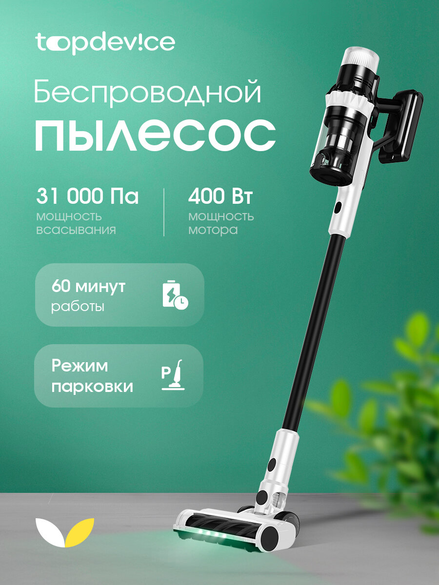 Беспроводной вертикальный пылесос Topdevice WVC800, Белый (400Вт 31000 Па 60 мин LED HEPA ) TDWVC800_WH: сравнение цен, характеристики, фото, актуальное наличие и цены.