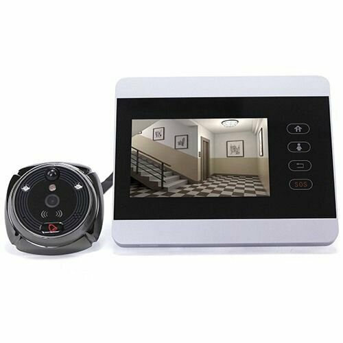 Данный прибор состоит из двух основных блоков: внешнего, который крепится непосредственно на входную дверь, и внутреннего, который представляет собой сенсорный дисплей с кнопками управления. Внешний блок оснащен качественной камерой 2 Мп, кнопкой звонка, микрофоном, небольшим динамиком, а также датчиком движения и ИК диодами для подсветки. Дисплей внутреннего блока имеет диагональ 4 дюйма. На нем можно наблюдать в реальном времени, что происходит за дверью, кто звонит в дверь и т. д. Этот блок оснащен слотом для карты памяти, на которую можно сохранять фотографии и видеоролики.