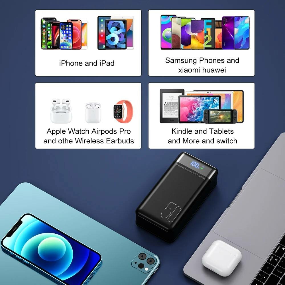 Вынешний аккумулятор Demaco A205 50 000 мАч с функцией быстрой зарядки - это портативное и функциональное устройство, которое станет незаменимым помощником для всех, кто ценит качество и удобство.