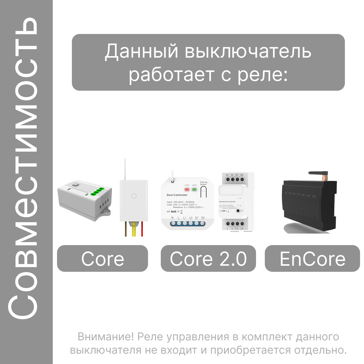 | Дополнительная информация | реле приобретается отдельно; питание от кинетического микрогенератора; ресурс работы: от 200,000 нажатий; дальность работы: 150 м (улица), 50 м (помещение); вес 110 гр |