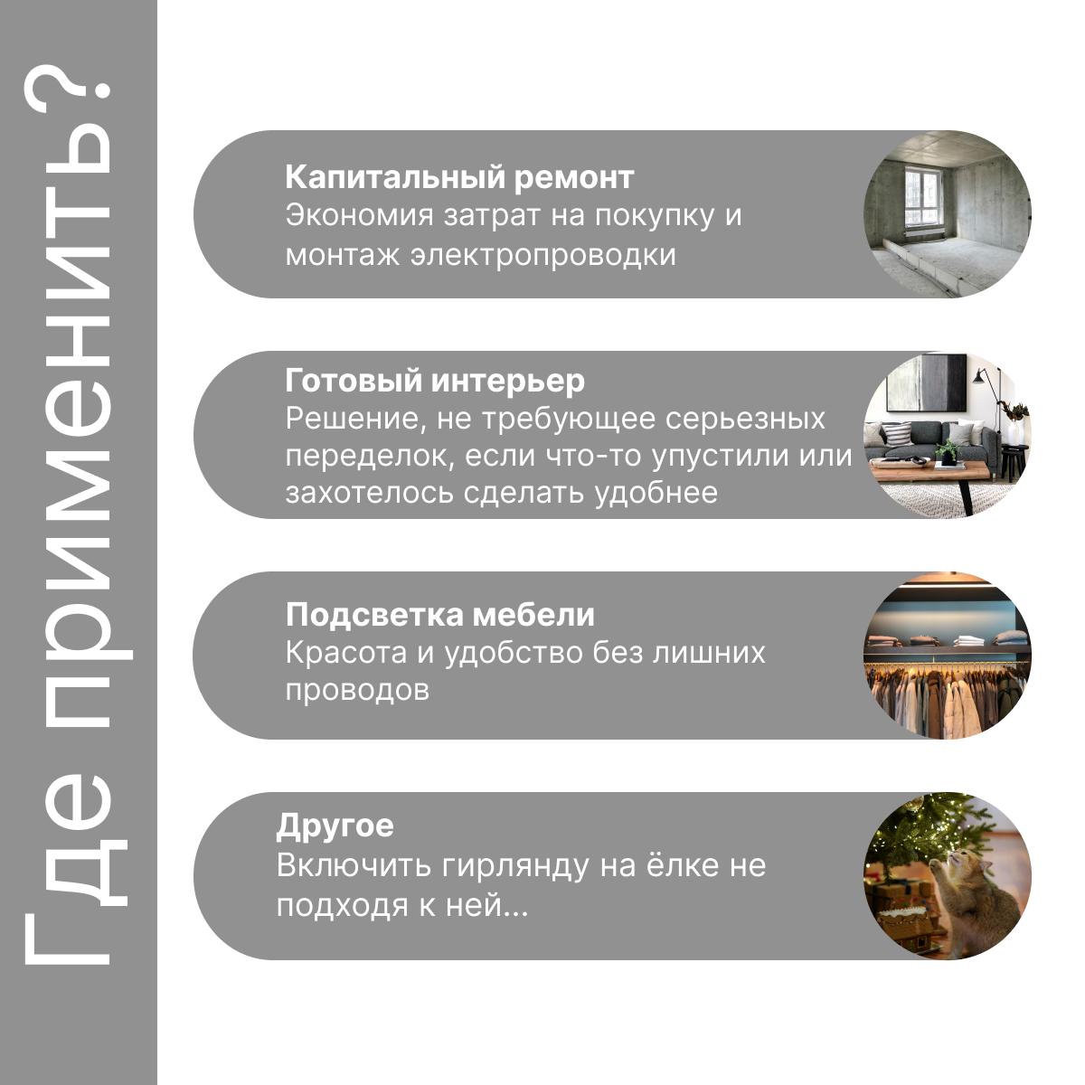 • Не требуется замена элементов питания в выключателе (без батареек)