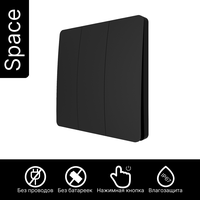 Беспроводной выключатель GRITT Space 3кл. черный, IP67, без реле - беспроводной кинетический (без батареек) выключатель для удаленного включения электроприборов без прокладки электропроводки к выключателю.