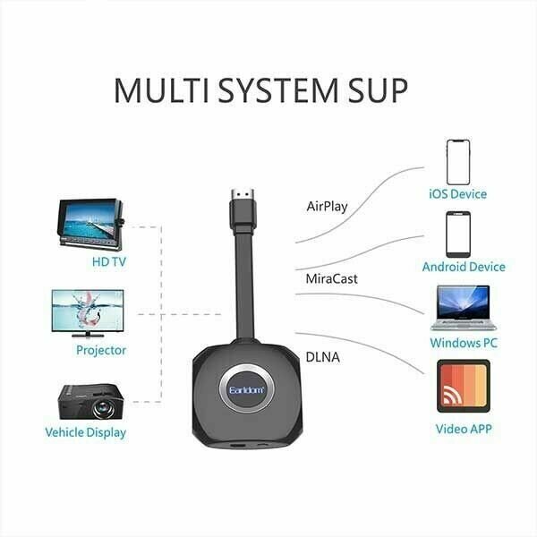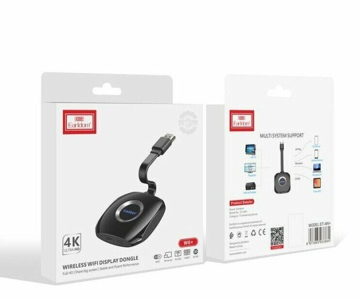4K Earldom Wireless HDMI ET-W6+ - Помогает конвертировать изображения, видео с телефонов, компьютеров . на экраны телевизоров, проекторов через соединение Wi-Fi без проводов. - Компактный дизайн позволяет брать его с собой куда угодно - Поддержка экспорта видео и изображений в разрешении 4K для резких, реалистичных изображений и видео. - Кабель покрыт защитой от запутывания, защиты от разрывов, безопасен для пользователей.