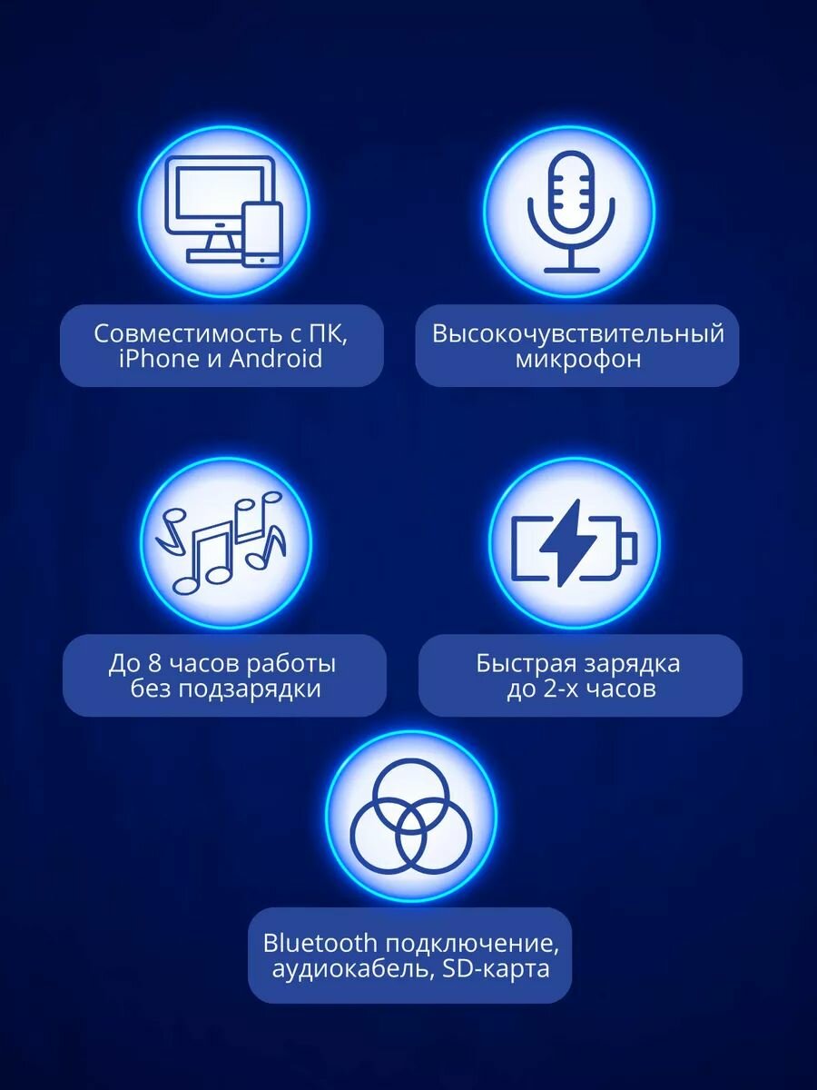 | Комплектация | Наушники; Значок с персонажем; Карточка; Аудиокабель Jack 3.5; Зарядный кабель Micro-USB; Коробка. |