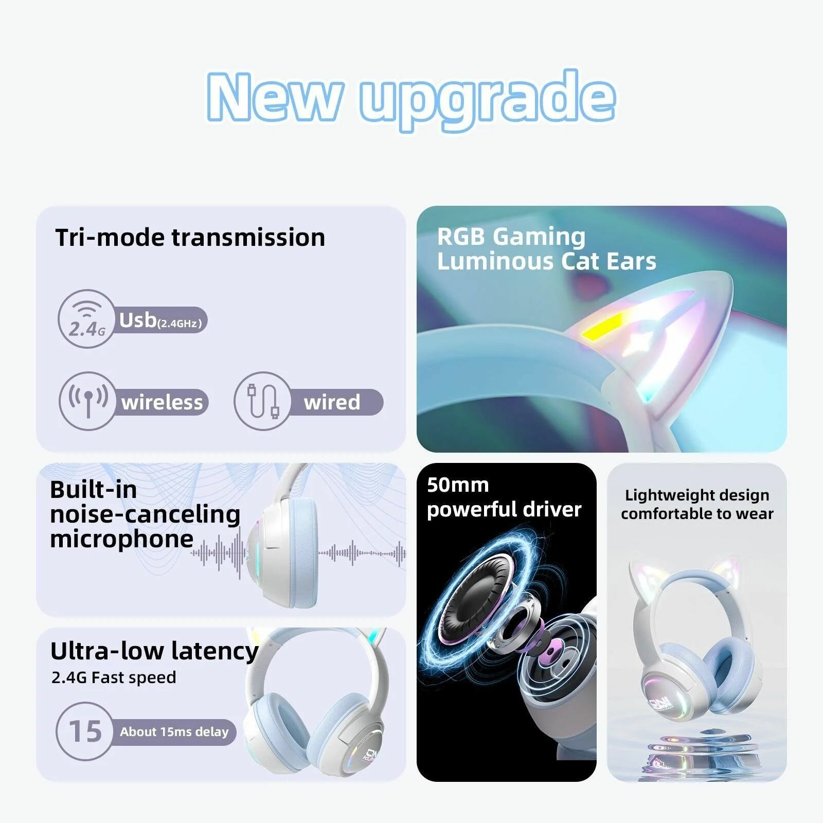 Беспроводные игровые наушники с микрофоном и ушками ONIKUMA GT838 (2.4G/BT/AUX), бело-голубая: сравнение цен, характеристики, фото, актуальное наличие и цены.