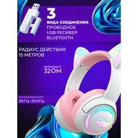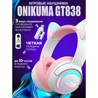 Беспроводные игровые наушники с микрофоном и ушками ONIKUMA GT838 (2.4G/BT/AUX), бело-розовые