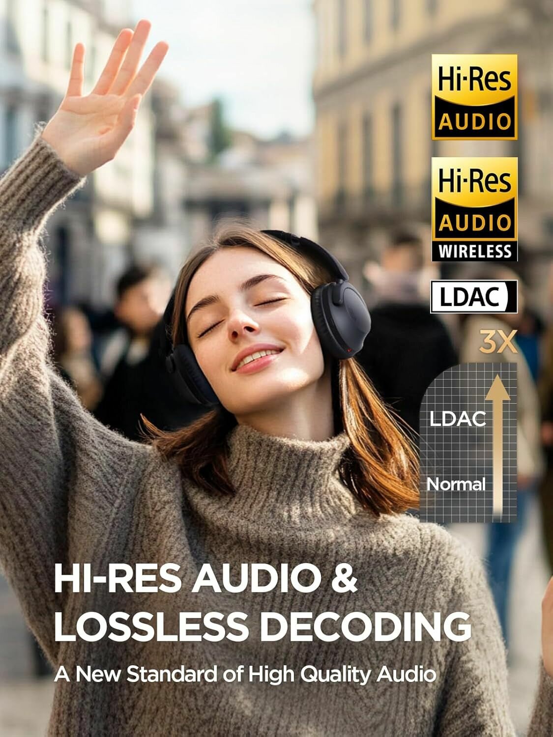 Превосходство звука Hi-Res: ощутите непревзойденный звук с двойной сертификацией Hi-Res gold. Шумоподавляющие наушники 1MORE SonoFlow Pro используют технологию LDAC для передачи в три раза большего объема данных по сравнению со стандартным Bluetooth, предлагая насыщенный, детальный звук, который оживляет вашу музыку.