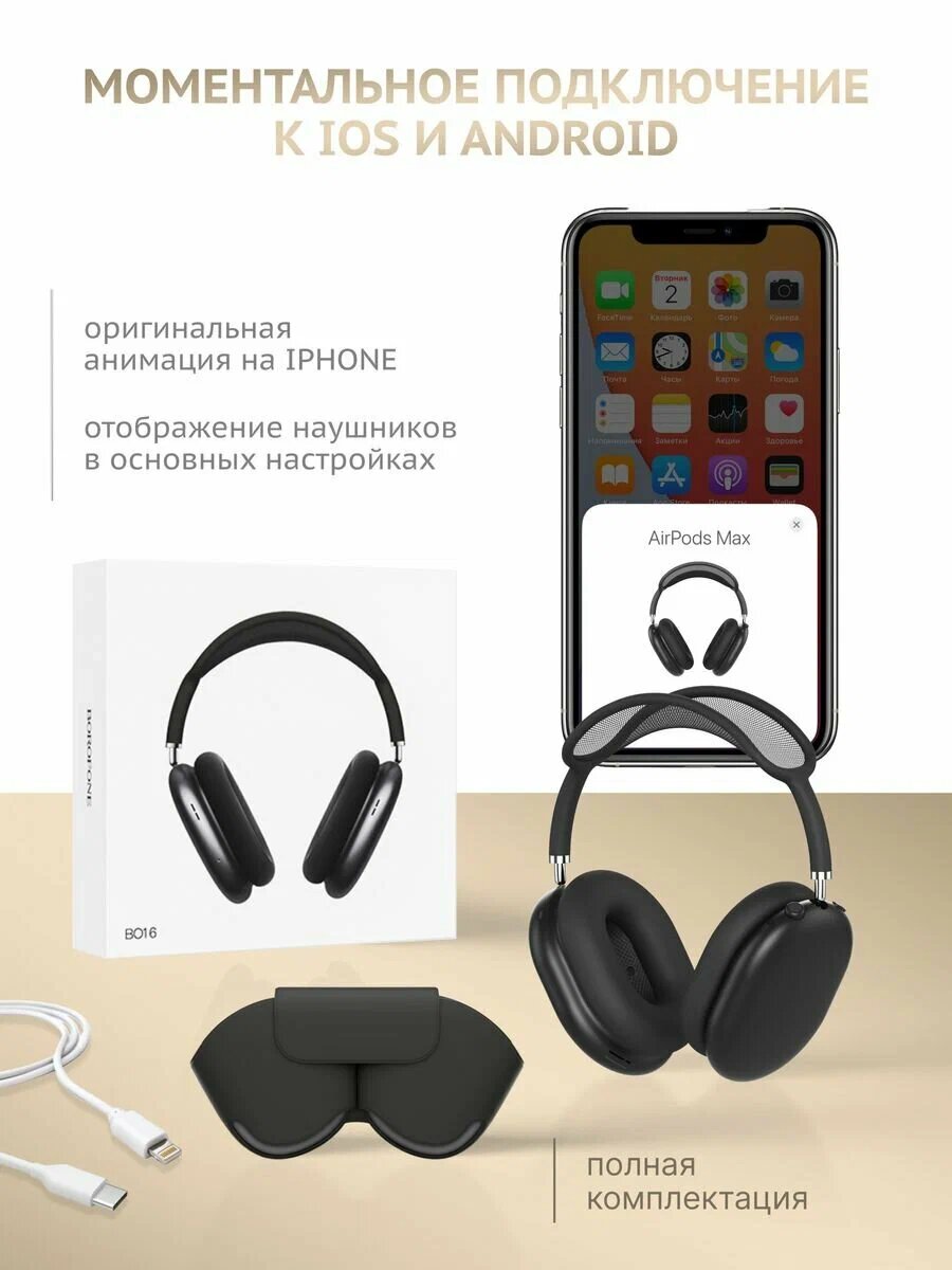 Беспроводные наушники Air Max -это высококачественный аксессуар, который создан для того, чтобы завоевать ваше доверие Наушники Air Мах отличаются запоминающимся стильным видом, способным выделить вас среди толпы. Сочетание цельнометаллических чашек и мягкого силикона с эффектом памяти обеспечивает комфорт для ваших ушей и головы, к форме которых наушники приспосабливаются самым оптимальным способом. Air Мах оснащены активным шумоподавлением (ANC) с автоматическим подключением при их надевании. Это позволяет передать ощущение полной изолированности от знешней среды, сводя все посторонние отвлекающие шумы на минимальный уровень. При этом шумоподавление никак не сказывается на высоком качестве звучания музыки Благодаря встроенным микрофонам, вы сможете чётко слышать, что происходит вокруг вас, без необходимости снимать наушники. Наушники Аir Мах поставляются с чехлом Smart Case и кабелем Lightning/USВ-С, что делает их удобными для переноски и хранения. Высота наушников составляет 187,3 мм, толщина -83,4 мм, а ширина-168,6 мм. Вес устройства-384,8 г. Беспроводные наушники Air Max White- это качественный и стильный аксессуар, который станет незаменимым помощником в повседневной жизни
