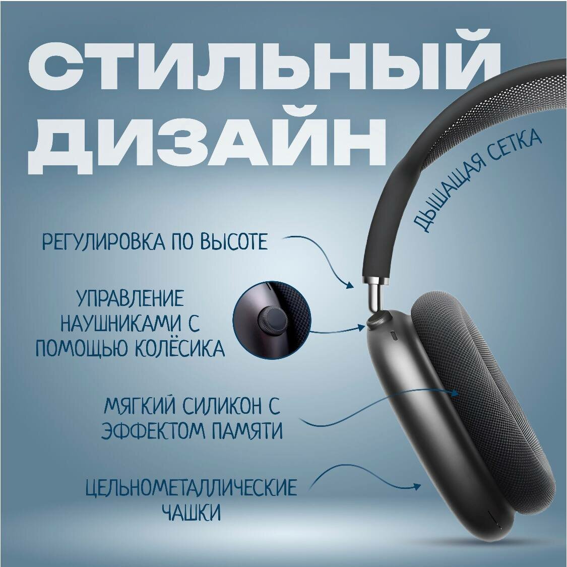 Беспроводные наушники Air Max - это высококачественный продукт, который сочетает в себе стиль и функциональность. Наушники комфортно сидят на голове, как взрослого, так и ребенка за счет регулируемой дужки и мягких амбушюр (часть наушников, прилегающая непосредственно к ушам).