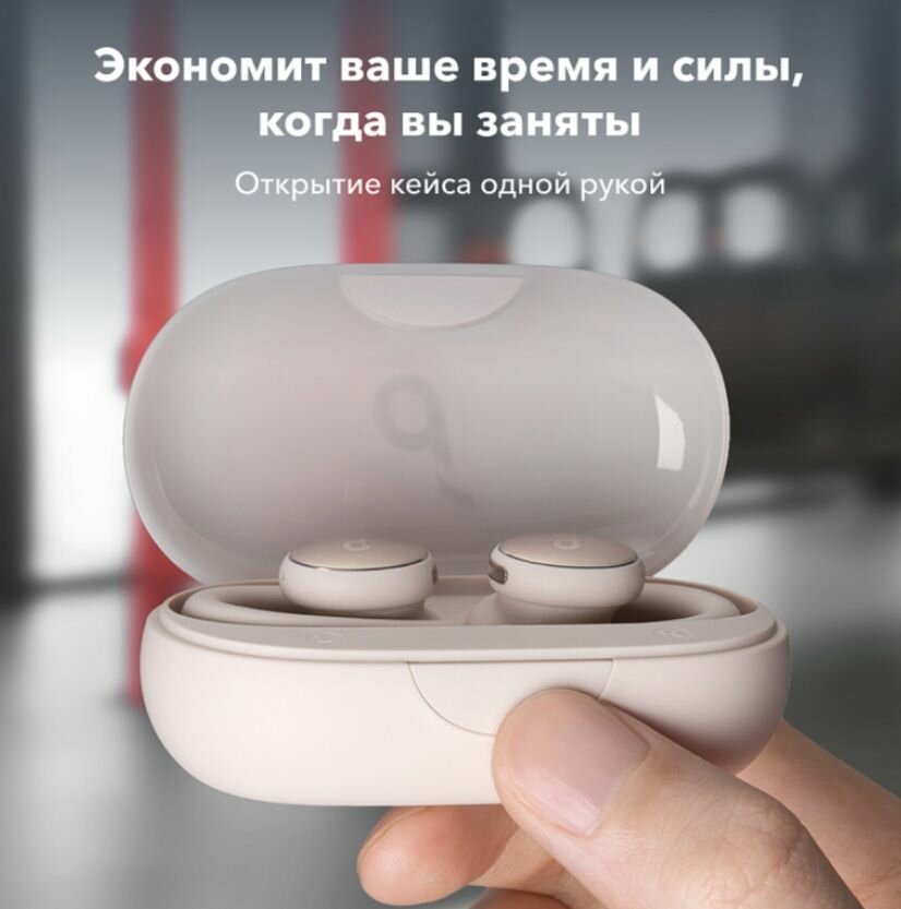 Открытие кейса одной рукой Просто нажмите кнопку на зарядном кейсе, чтобы открыть его одной рукой. Это небольшая деталь сэкономит ваше время и силы, когда вы заняты. Компактный зарядный кейс легко помещается в карман или спортивную сумку, не занимая много места.