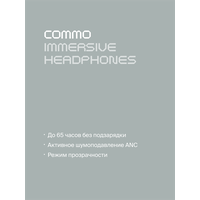 Наушники Commo Immersive — это беспроводные накладные наушники в лаконичном и функциональном дизайне. Быстро подключаются к любому девайсу и стабильно работают. Commo Immersive поддерживают до 65 часов воспроизведения без подзарядки и до 50 часов — в режиме ANC.
