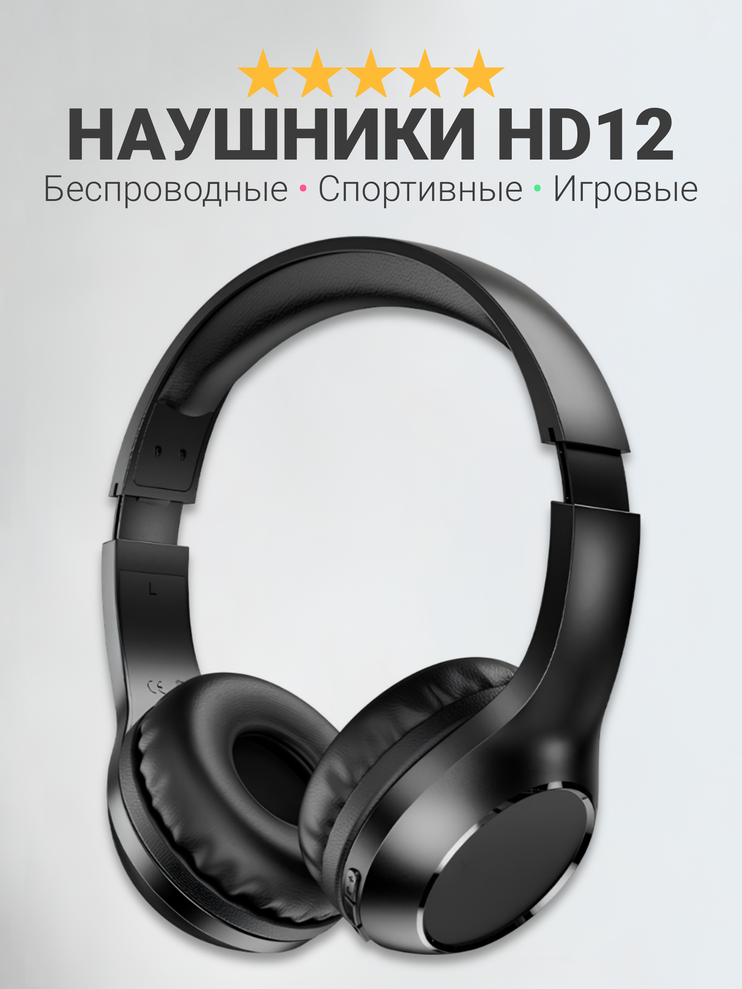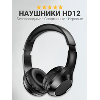 Купить Беспроводные наушники для улицы и дома Power 12, полноразмерные с микрофоном поддержка микро-карт, черные с доставкой по всей России.