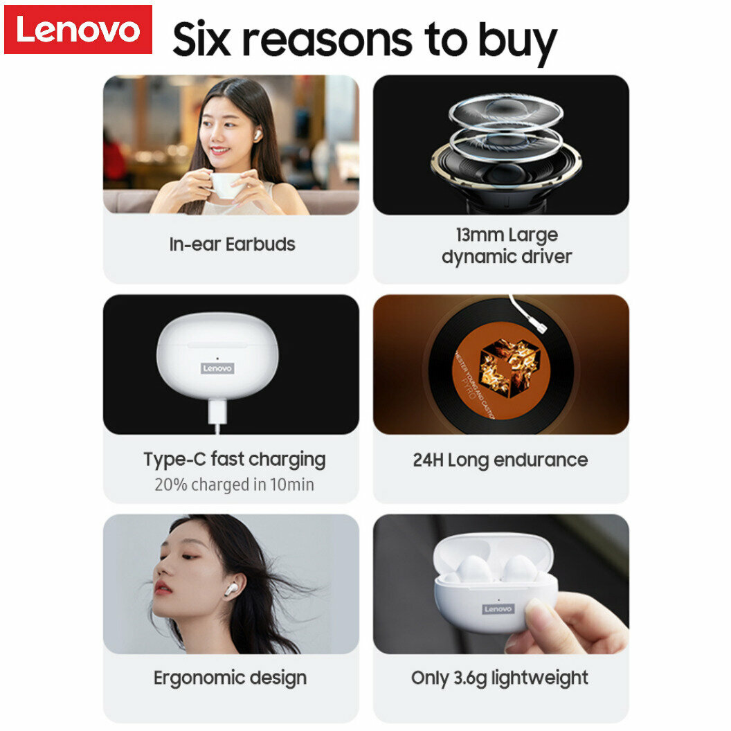 Lenovo LP5 - беспроводные наушники с Bluetooth версии 5.0, что обеспечивает расстояние соединения в 10 метров, стабильное соединение и низкое энергопотребление. В комплект входит эргономичный кейс с аккумулятором 250 мАч, который позволяет заряжать наушники в любое время и в любом месте. Зарядный кейс позволит значительно увеличить продолжительность работы. Для зарядки кейса используется разъем USB Type-C. Встроенный микрофон обеспечивает высокое качество передачи вашего голоса и комфортное общение с собеседником. Наушники отлично подойдут для занятий спортом, офиса, игр и т. д
