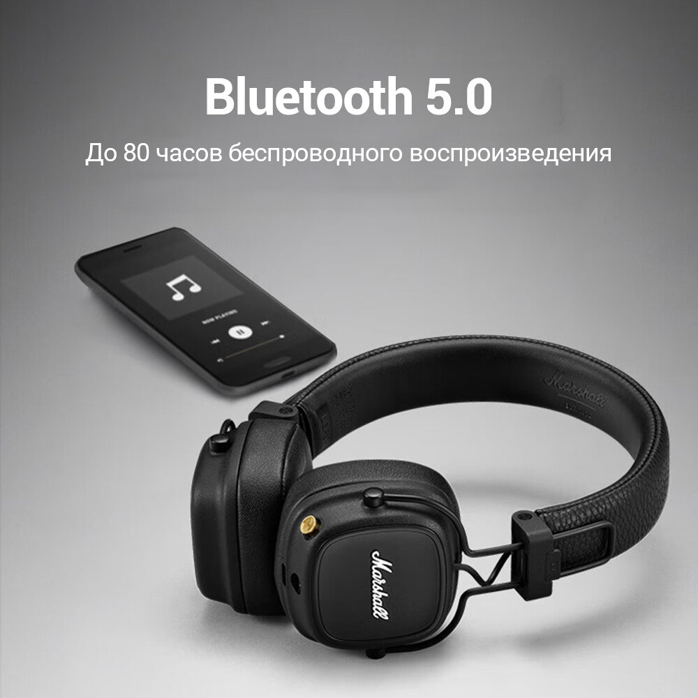 Major IV сочетает в себе повышенную комфортную эксплуатацию с классическими элементами Marshall, создавая культовый и инновационный дизайн. Новый складной зажим означает, что Major IV складывается в еще более компактный размер, а ушные вкладыши защищены от чрезмерного износа. Он отличается тактильной и эффективной кнопкой управления, текстурированным черным винилом и надписью Marshall, а также прочностью, необходимой для повседневной жизни.
