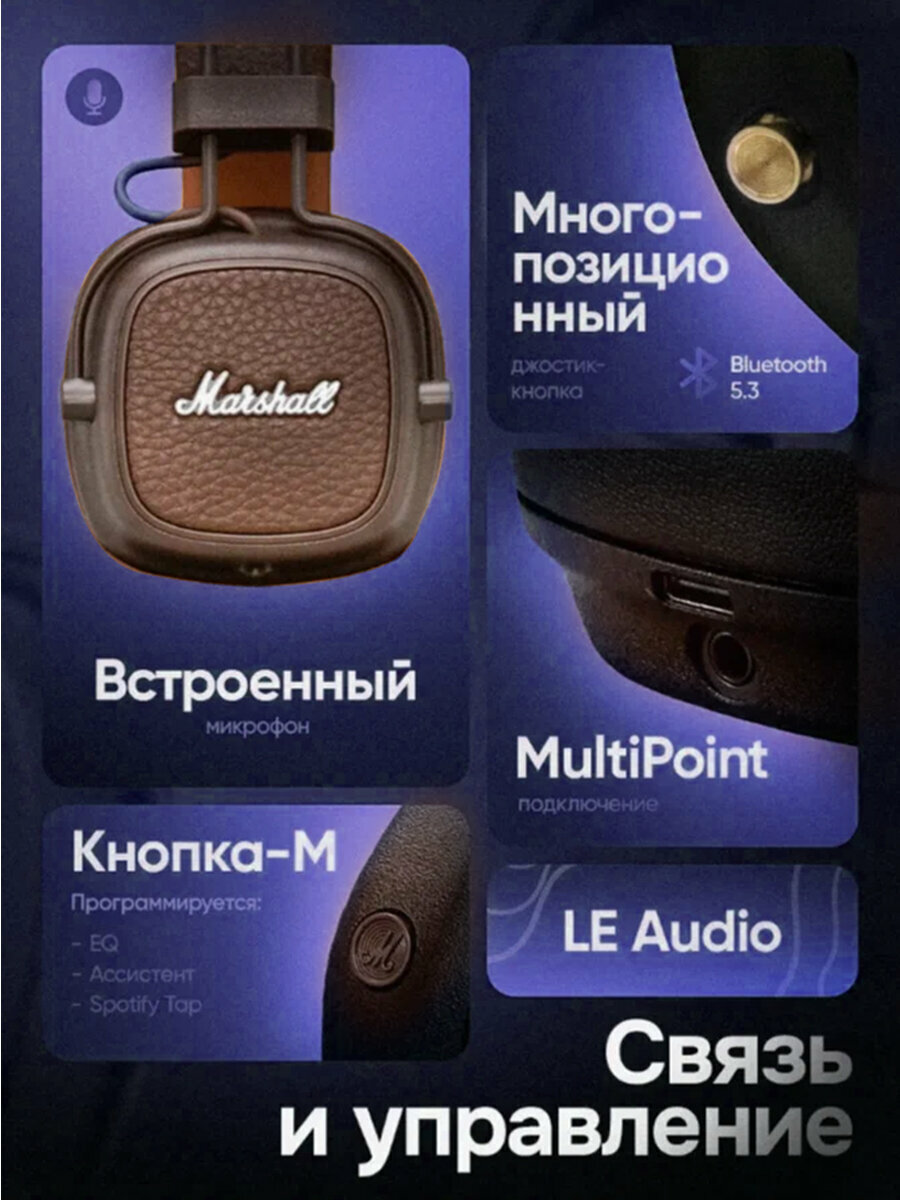 | Комплектация | Наушники Major V Зарядный кабель USB-С Соединительный аудио кабель Руководство пользователя |