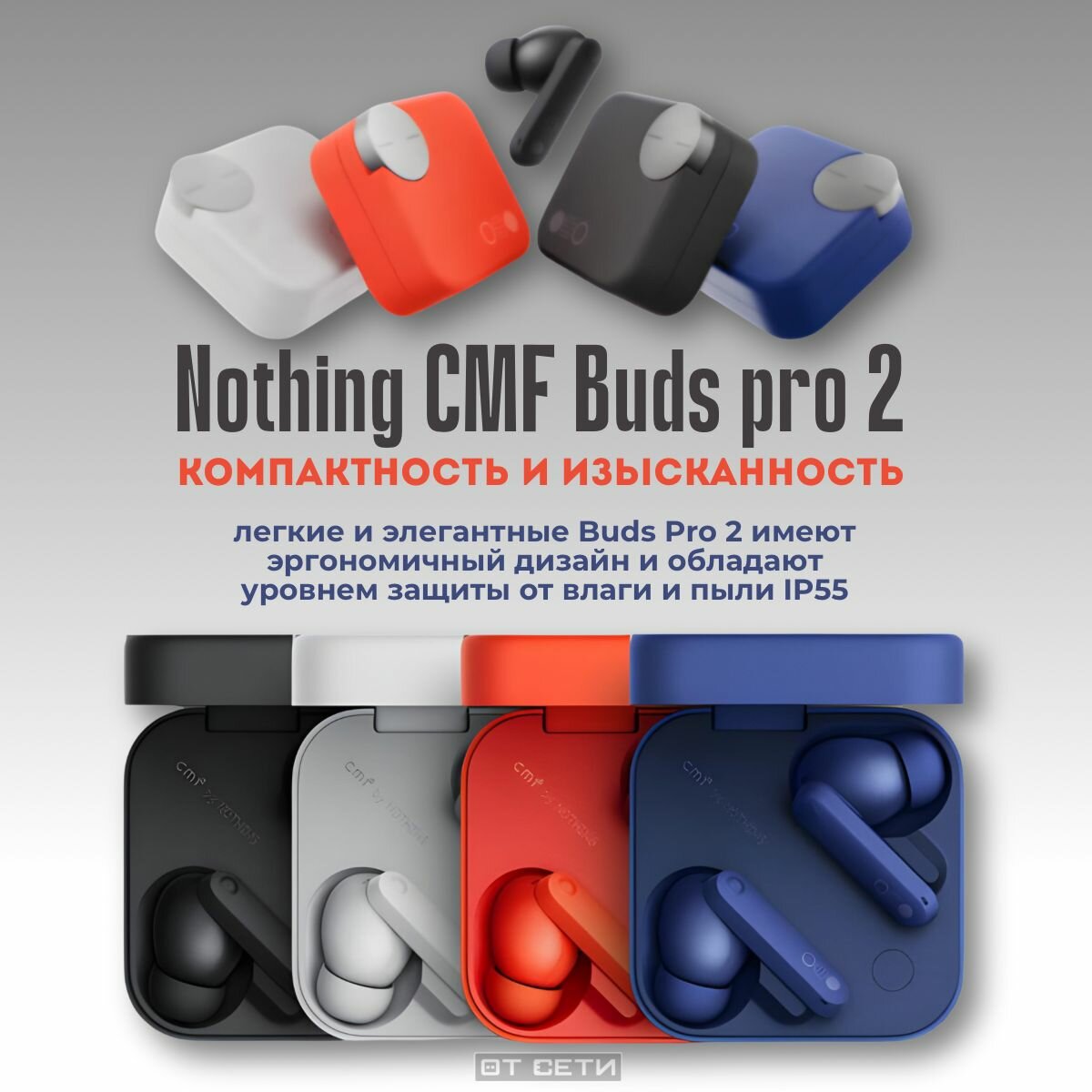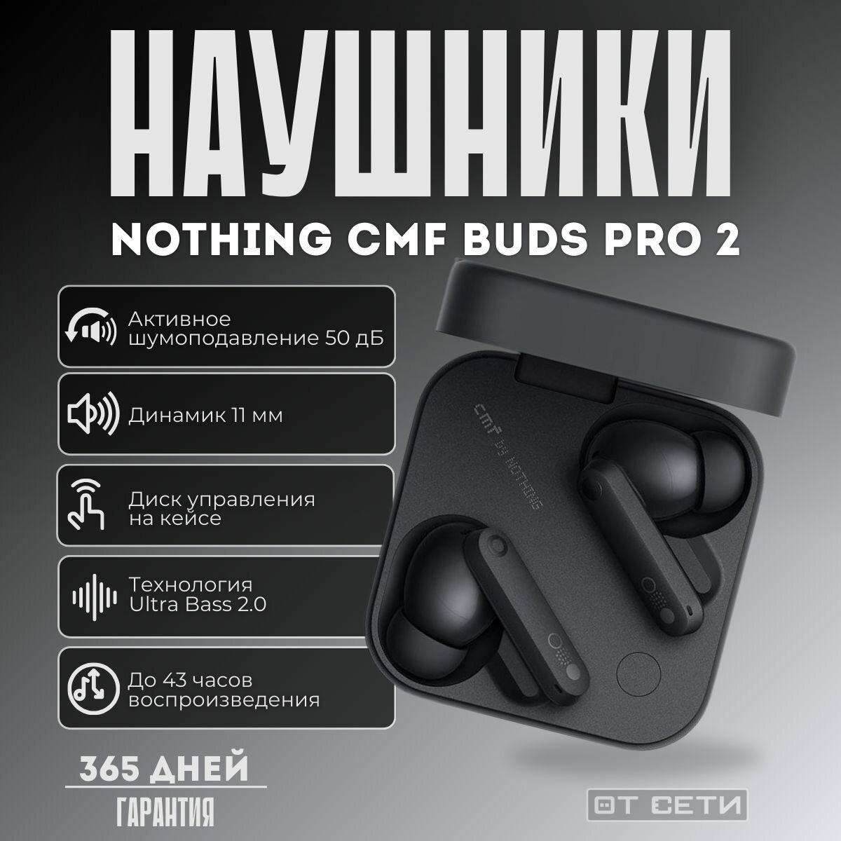 Купить Беспроводные наушники Nothing CMF Buds Pro 2 (New 2025) с шумоподавлением, Dark gray, B187 с доставкой по всей России.