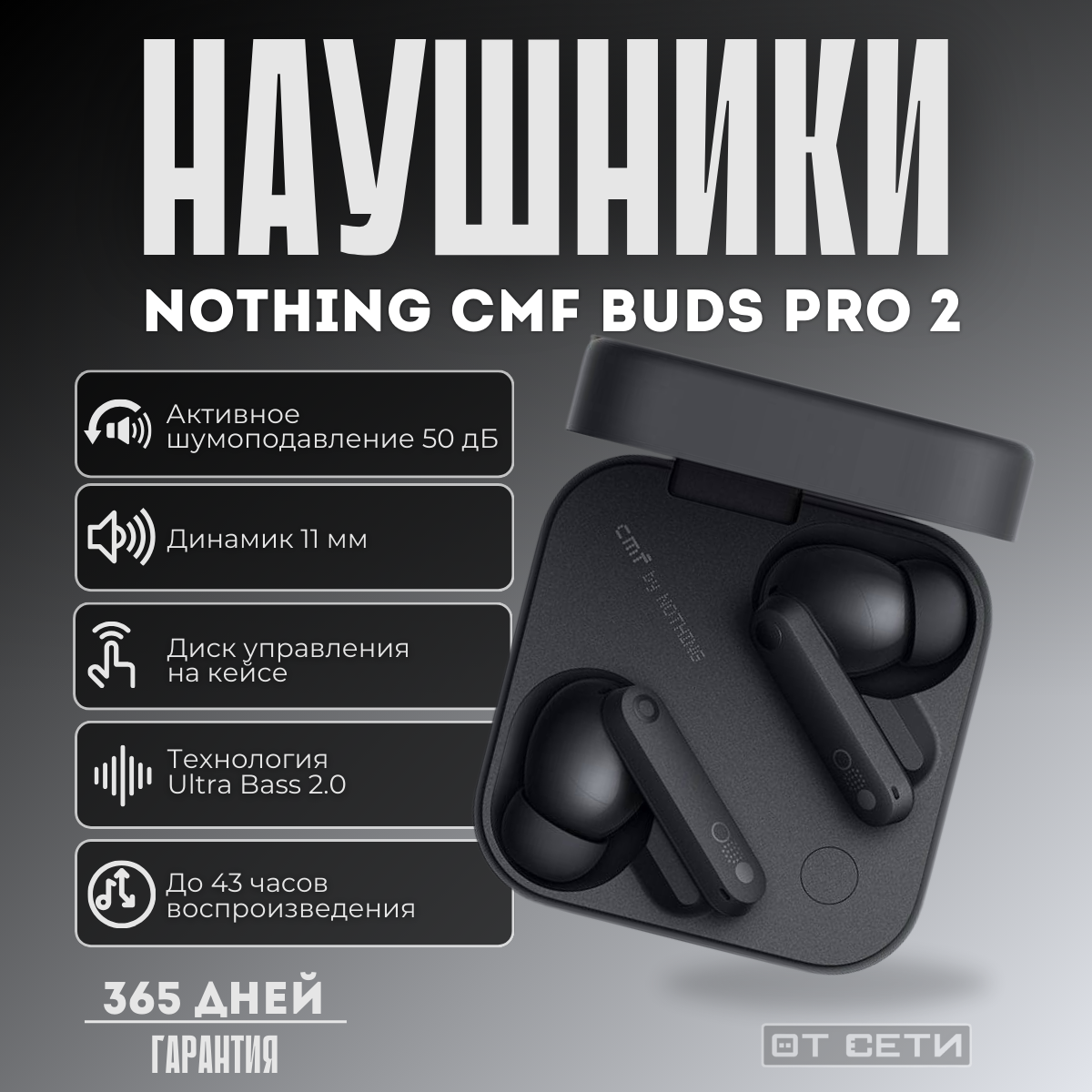 Купить Беспроводные наушники Nothing CMF Buds Pro 2 с шумоподавлением, тёмно-серый, B172 с доставкой по всей России. Беспроводные наушники Nothing CMF Buds Pro 2 с шумоподавлением, тёмно-серый, B172: сравнение цен, характеристики, фото, актуальное наличие и цены.