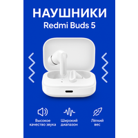 Купить Беспроводные наушники Xiaomi Redmi Buds 5 (M2316E1) White, Bluetooth 5.2, 30 часов работы, звук высокого качества с доставкой по всей России.