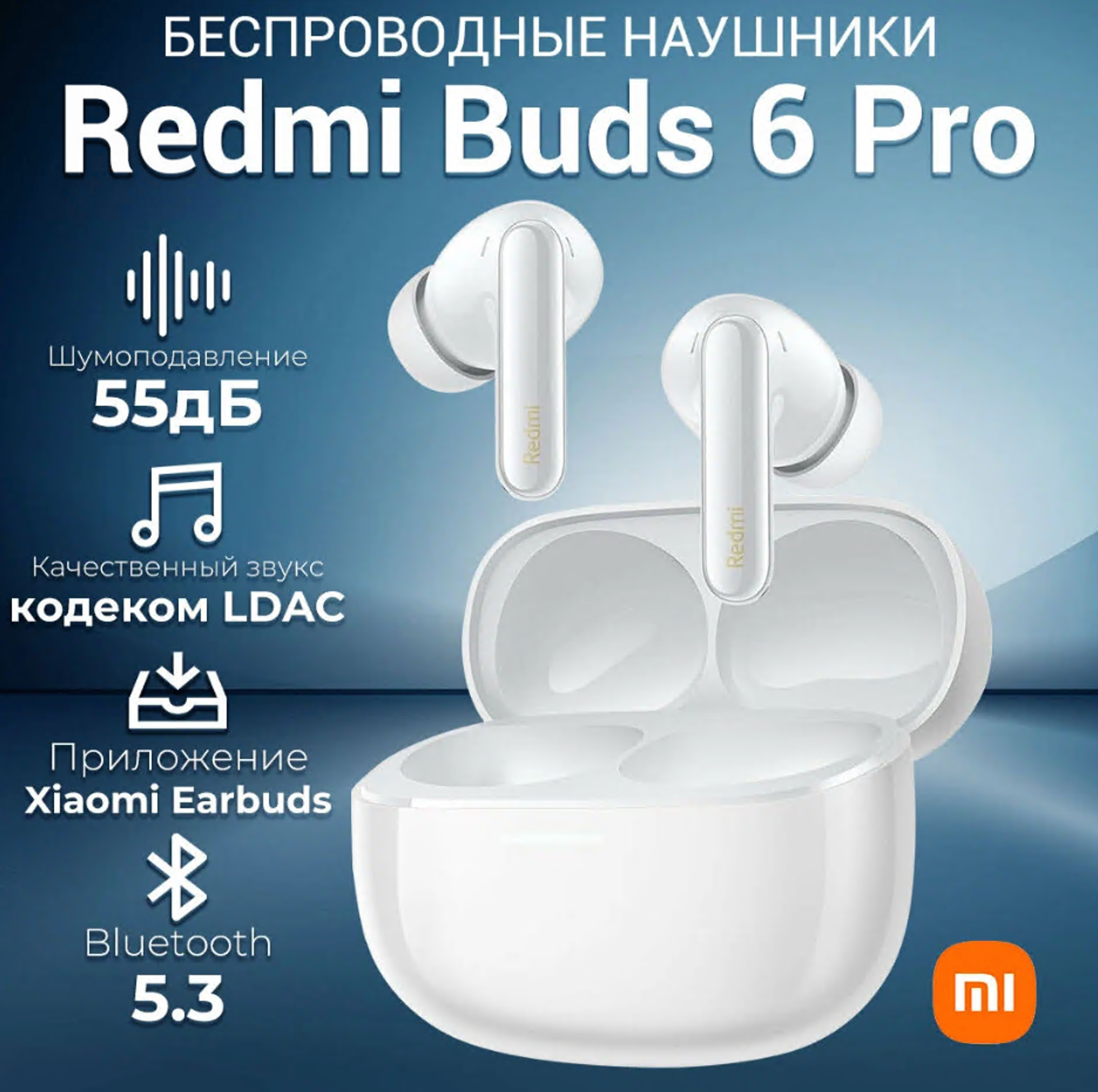 Купить Наушники беспроводные Xiaomi Redmi Buds 6 Pro белые BHR9310GL с доставкой по всей России.