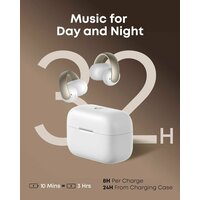 Гибкая, надежная посадка: наушники-вкладыши Soundcore AeroClip оснащены адаптивной конструкцией с открытым кольцом, выдерживающей 20 000 изгибов. Они легкие и гибкие, надежно фиксируются в течение всего дня.