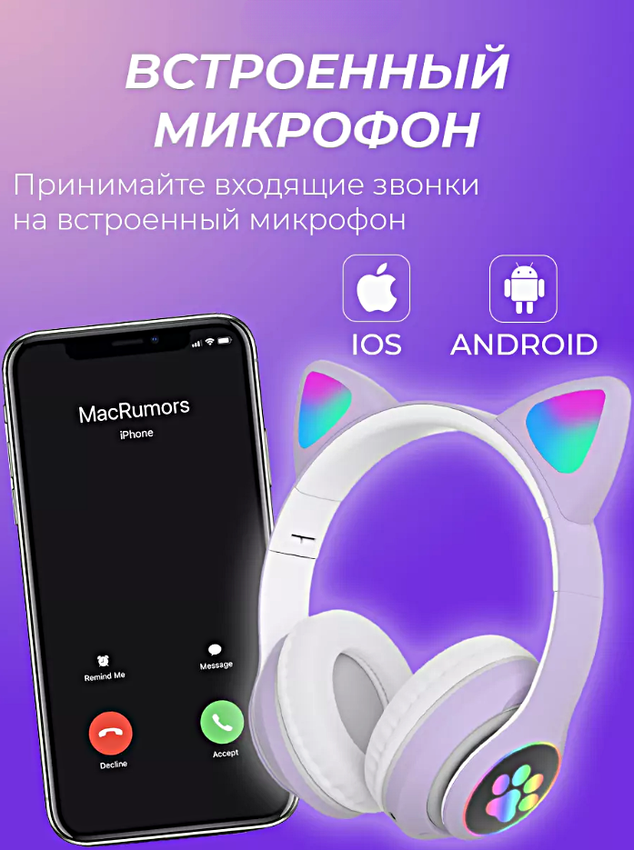 Беспроводные наушники STN-28, Наушники светящиеся с ушками кошки Bluetooth, Кошачьи ушки, Фиолетовый: сравнение цен, характеристики, фото, актуальное наличие и цены.