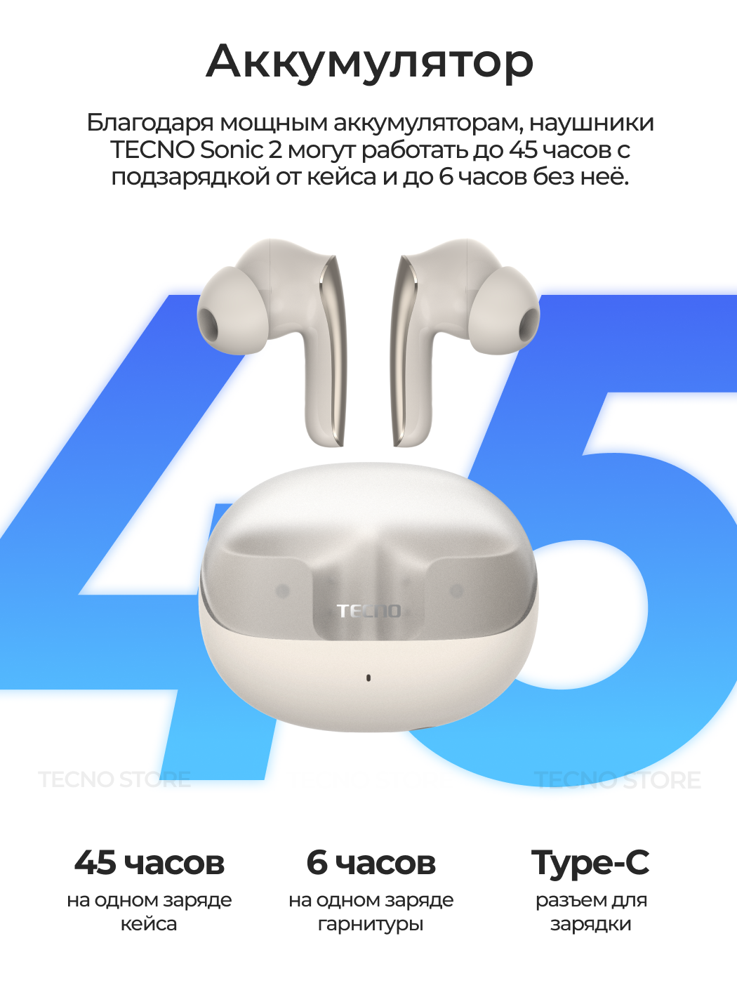 Беспроводные наушники Tecno Sonic 2, белые: сравнение цен, характеристики, фото, актуальное наличие и цены.