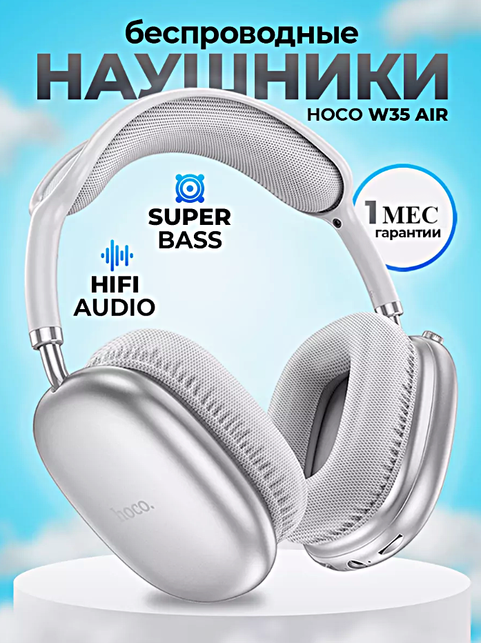 Беспроводные наушники W35 AIR, Игровые полноразмерные наушники с микрофоном, Bluetooth гарнитура, Серебристый: сравнение цен, характеристики, фото, актуальное наличие и цены.
