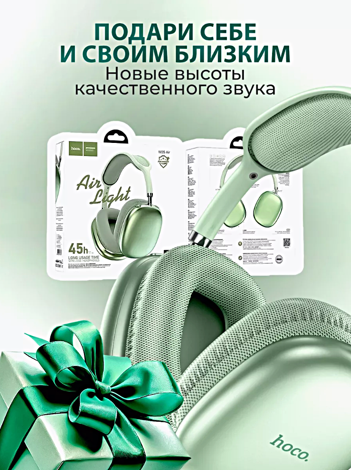 Купить Беспроводные наушники W35 AIR, Игровые полноразмерные наушники с микрофоном, Bluetooth гарнитура, Зеленый с доставкой по всей России. Беспроводные наушники W35 AIR, Игровые полноразмерные наушники с микрофоном, Bluetooth гарнитура, Зеленый: сравнение цен, характеристики, фото, актуальное наличие и цены.