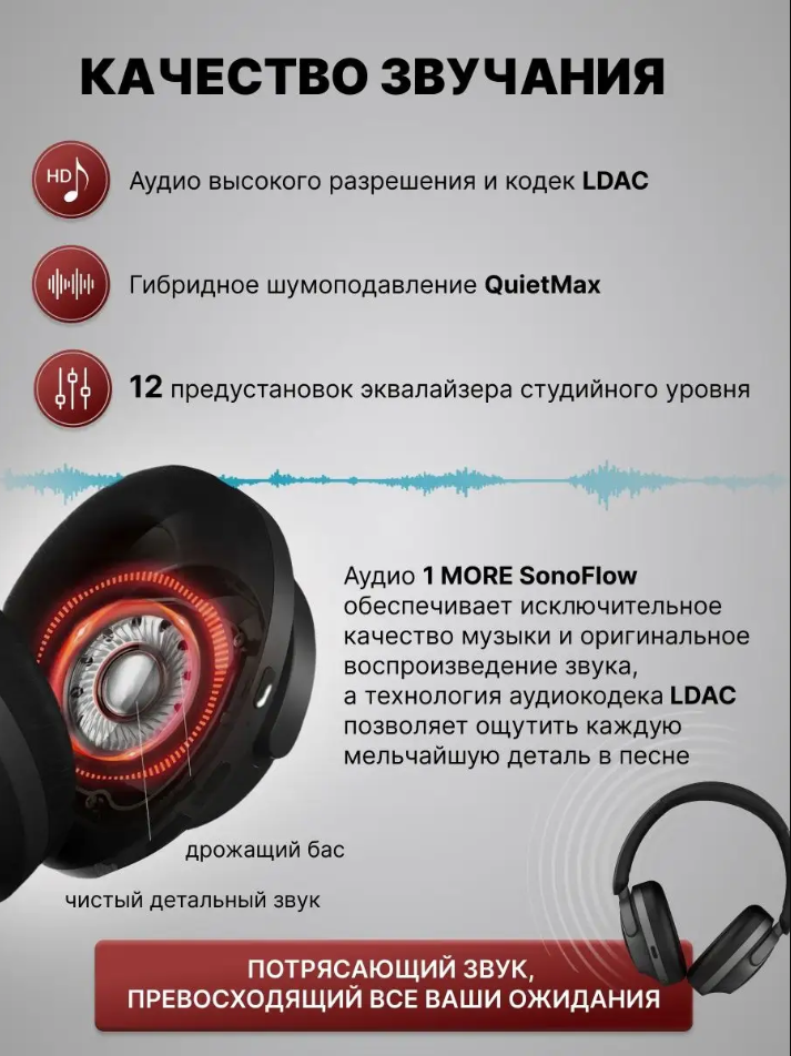 Купить Беспроводные наушники Xiaomi 1MORE HC905 SonoFlow, черные, Hi-Res, с шумоподавлением с доставкой по всей России.