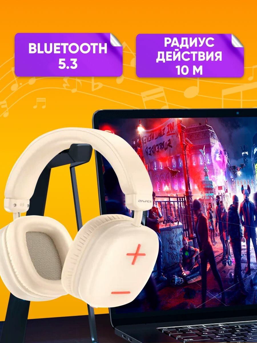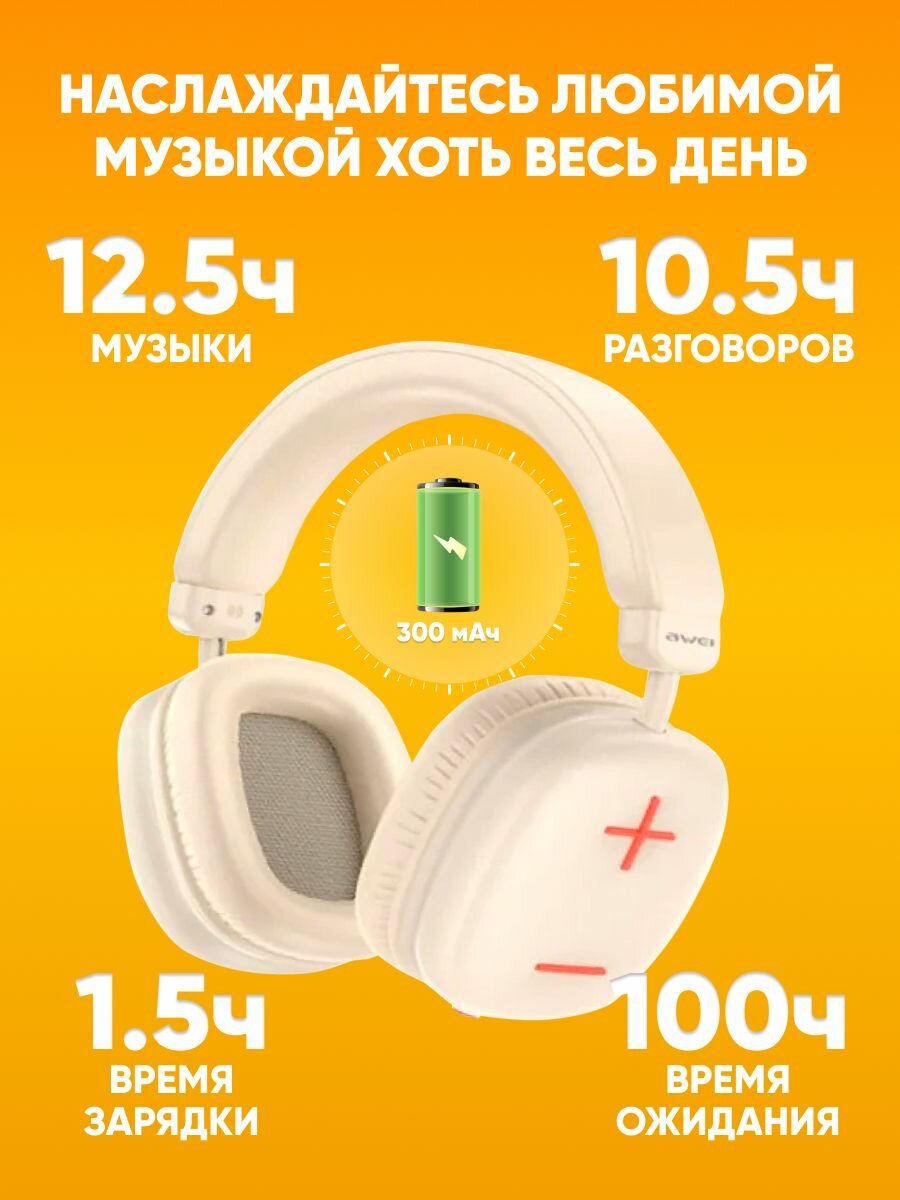Беспроводные полноразмерные наушники AWEI AT6, бежевые / Беспроводная Bluetooth-гарнитура с объемным стерео звуком / Большие bluetooth наушники с микрофоном: сравнение цен, характеристики, фото, актуальное наличие и цены.