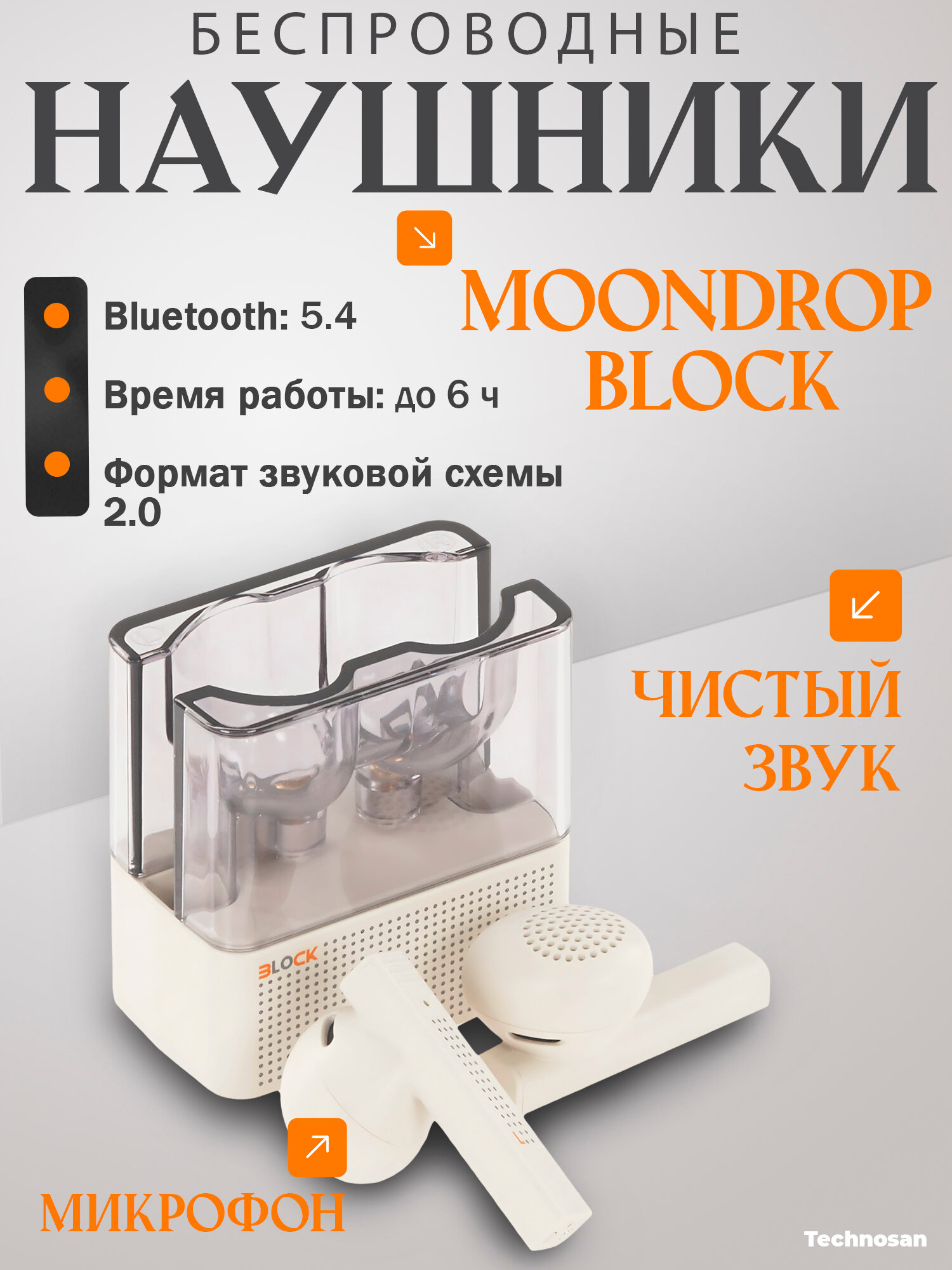 Купить Беспроводные TWS наушники MoonDrop Block (белый) Bluetooth 5.4 с доставкой по всей России.
