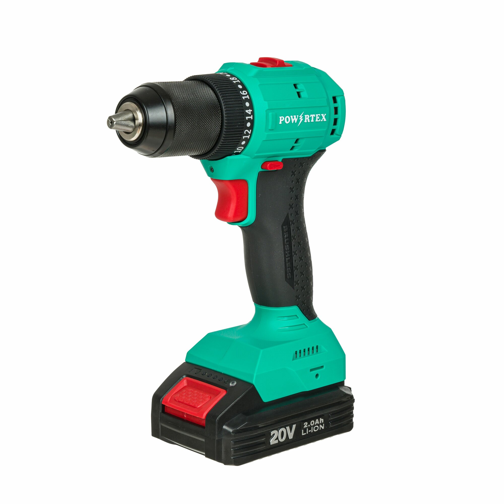 Бесщеточная аккумуляторная дрель-шуруповерт Powertex Brushless Drill 13мм, АКБ 20В, 20 В, Li-ion, 60 Нм, 0-500/0-2000 об/мин, 2АКБ.: сравнение цен, характеристики, фото, актуальное наличие и цены.