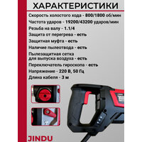| Подробная комплектация | - Дрель JDС-06РВL - Система пылеудаления - Дополнительная рукоятка - Инструкция _Защитные очки |
